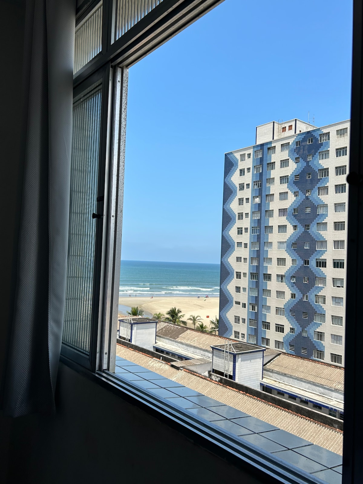 Lindo apartamento em Praia Grande, vista maravilhosa da praia Aviação. Localização: 2 minutos a pé da areia, 4 minutos da Padaria Boa Praça, 5 minutos do quiosque Ibiza. Apartamento bem arejado, com ventilador na sala e quarto. Quarto com cama Queen e sofá cama casal Sala com sofá cama king (3 metros) 1 banheiro Cozinha completa, panelas, pratos, talheres, xícaras, máquina de café elétrica Dolce Gusto, Airfryer, microondas, tostadeira elétrica, Tv (canais abertos), Wi-Fi e fechadura eletrônica.