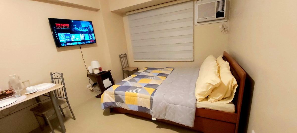 📢 PLEASE READ BEFORE BOOKING "Home Away from Home" – Studio Unit This cozy studio features 1 full/double size bed 🛏️, perfect for 2 people, plus an additional single size floor mattress (about 1 inch thick) 🛋️ that can comfortably accommodate 1 more guest. The extra mattress will only be set up if your party exceeds 2 guests. It’s your perfect urban sanctuary 🏙️, right in the heart of the vibrant Megaworld Complex! 🌟