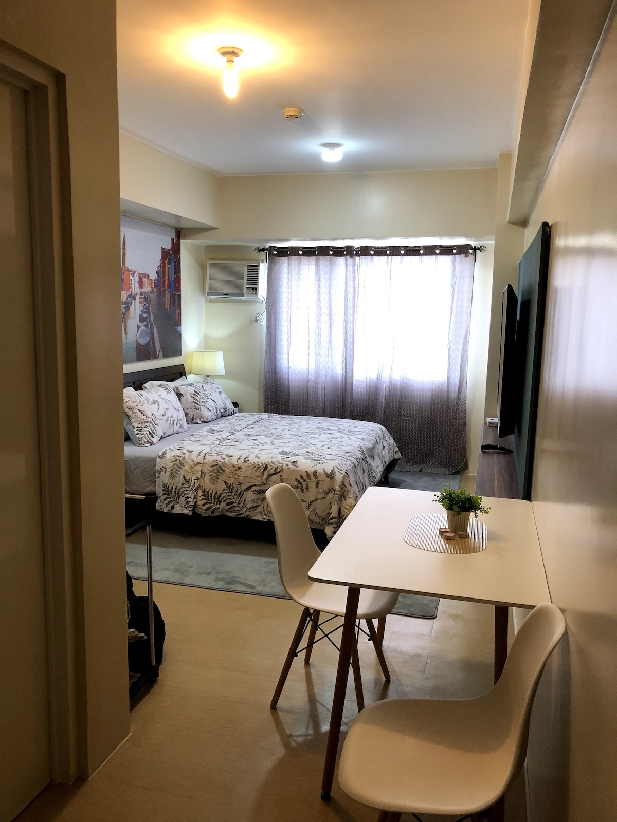 Inspired by rustic and minimalist design, this fully furnished studio is perfect for business or leisure stays in the heart of Iloilo. ✓double-size bed with pullout (up to 3 guests) ✓pool access ✓Wi-Fi ✓AC ✓Smart TV (with Netflix Premium) ✓Self Check-in. 🛍️ Walking distance to Atria Shops & Restaurants, QualiMed, Ateneo de Iloilo 🏙️ Near SM City, Festive Walk Mall, and Iloilo Convention Center 🛬 About 24–30 mins from the airport and 17–25 mins to Parola Wharf for Guimaras trips