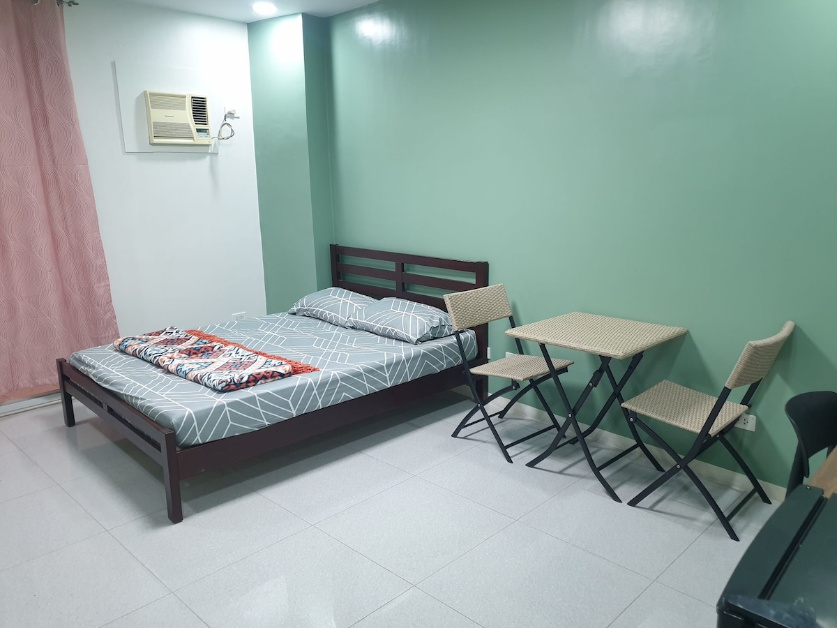 It is a brand new entire private 1-BR suite, (not a studio type) has spacious & comfy living room, A/C, shower heater at bath room. Comes with equipped kitchen, Cable TV, WiFi, Queen Bed, laundry, 24 Hour security guard, ample parking, laundry. Free breakfast for one. Airport pick-up available. Friendly staff. Price quoted is for one (1) person. Additional $7.00 each adult(s ) and $5.00 per child below 12 y.o. Co-host Nancy is always available at vicinity.