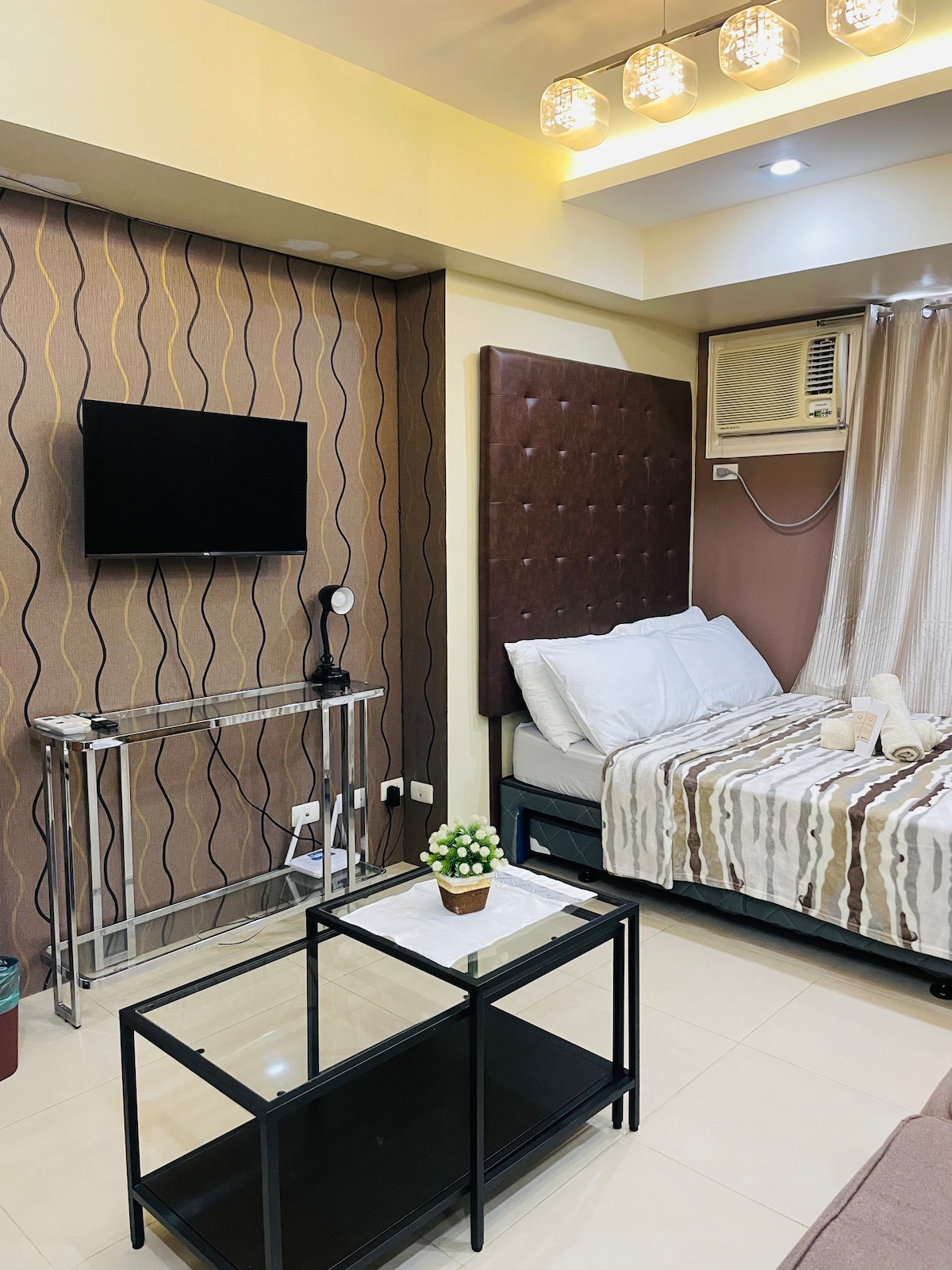 Come over and relax at our urban yet cozy retreat! Decked out with stylish and functional furniture, it's ideal for both rest and work. Where you will be staying: The bed accommodates 2 with a sofa bed tucked for + individuals. Fibr Wi-Fi secured for your needs with a SMART TV for Netflix and chill. The bathroom: - Towels - Shampoo - Body Wash - Hand Soap - Dental Kits