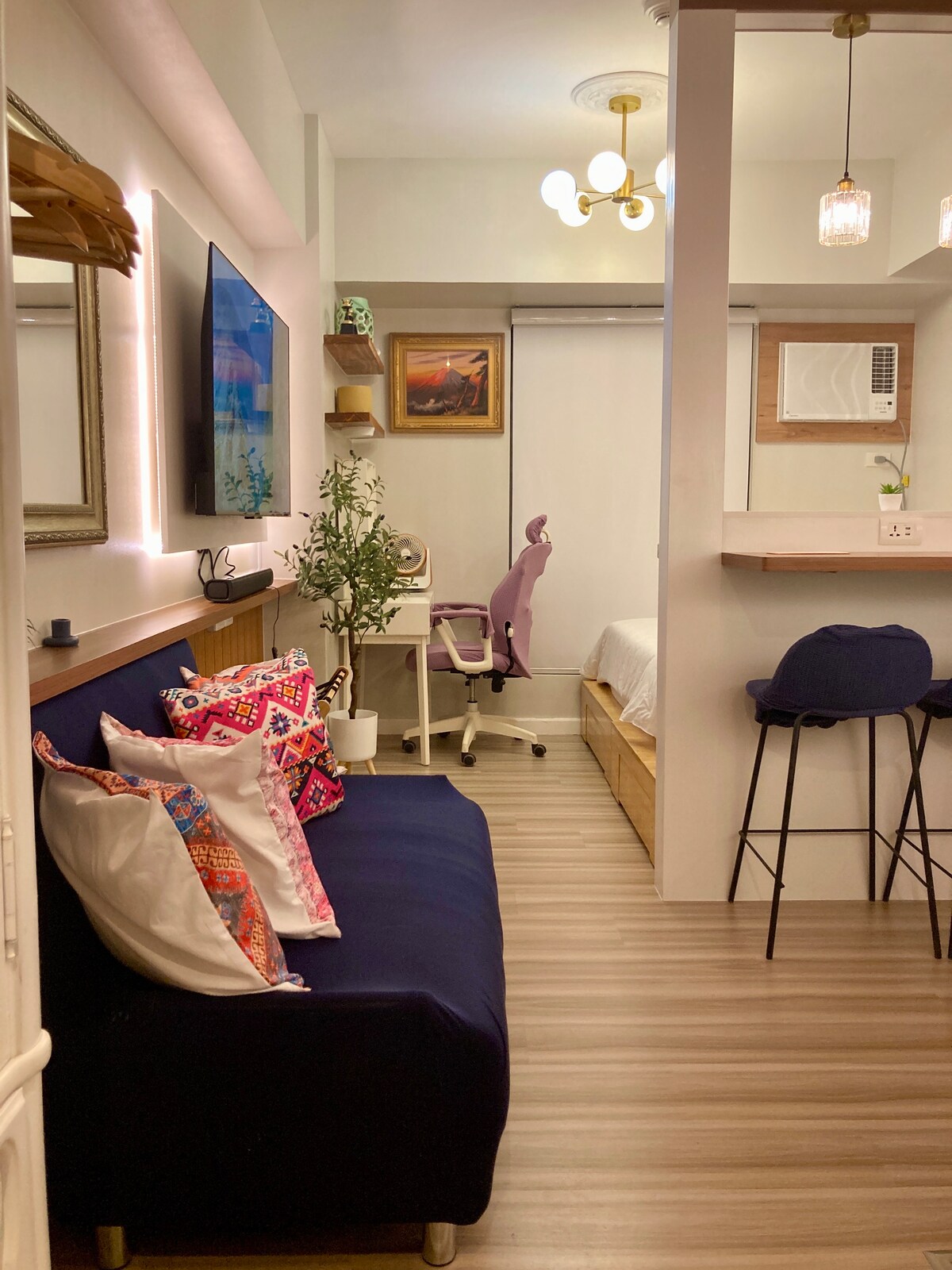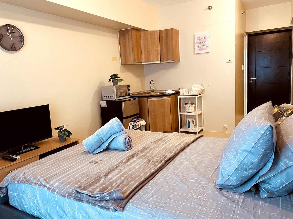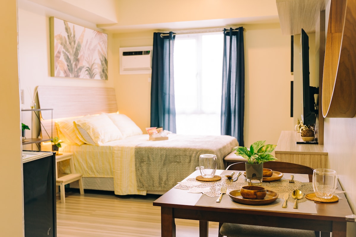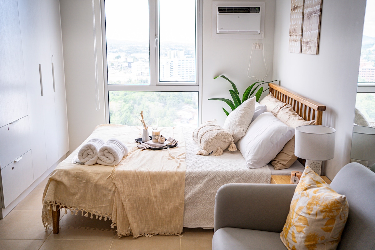 A cozy & thoughtfully furnished studio condo near Cebu’s major commercial & business hubs - IT Park & Ayala Center! So whether you’re visiting Cebu for business or leisure, you’re sure to be accessible & within reach to your destinations. Feel right at home and be greeted with the wonderful views of the sunrise, the hills and fairways. And with Fiber internet, always stay connected wether for work or Netflix. We’d love for you to experience Cebu and to feel right just at home.