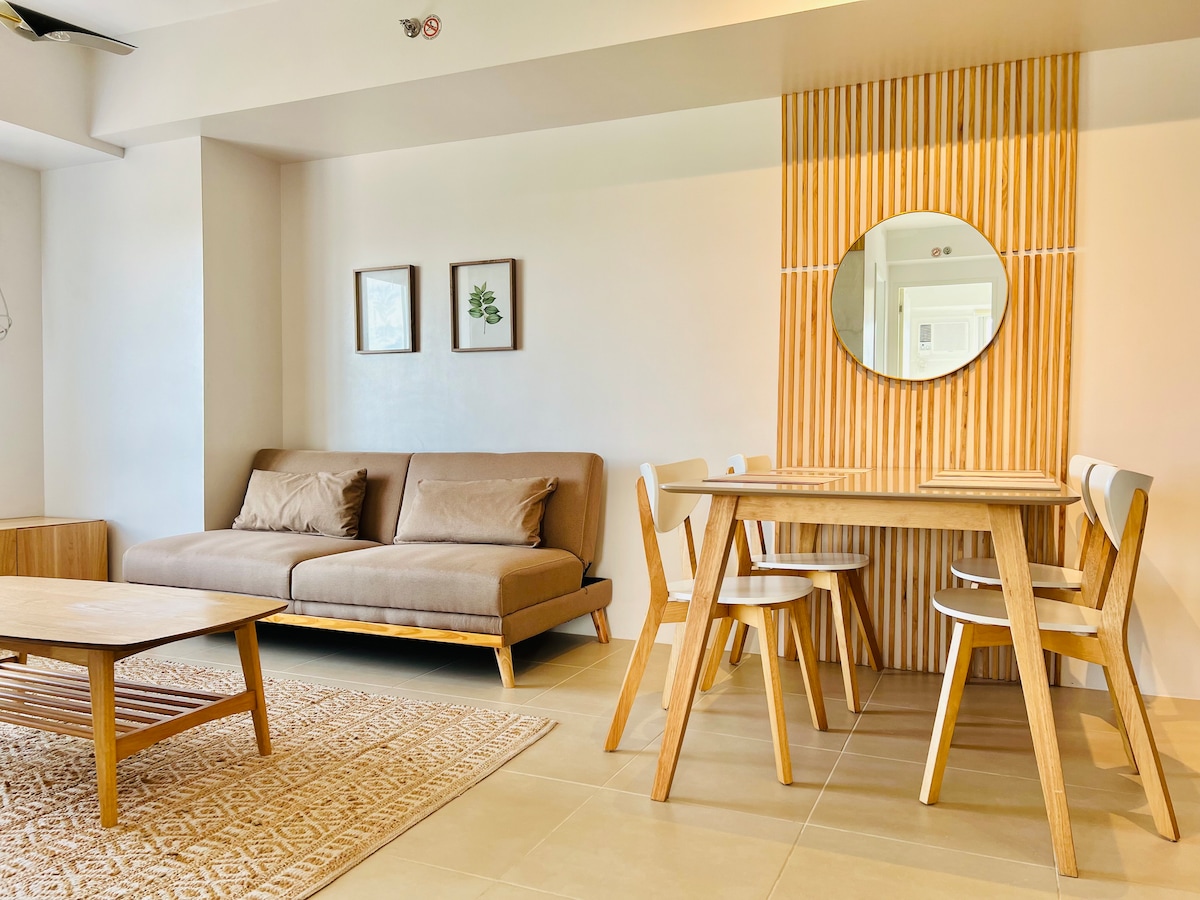 - Spacious 1 BR unit can comfortably accommodate up to 6 Guests - 1 Double size bed in the Bedroom, and 2 Double size Sofabad in the living room. - Super-fast Fiber Optic Internet Connection up to 450++ Mbps Speed - 42” Smart TV with Disney+, Amazon Prime Video, Max, YouTube and more - 3 Swimming Pools - Full kitchen with cooking wares - Dining Table with 6 Chairs - Walking distance to Ayala Mall Central Bloc, Restaurants, Convenient stores, Coffee Shops, Sports Bar and more