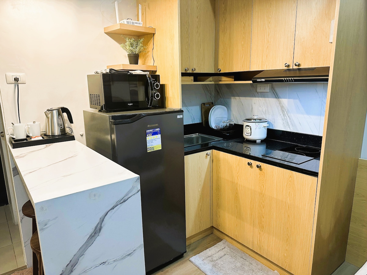 Fully furnished studio type Condo in the I.T. Park Cebu City, that has been professionally designed for the comfort of the guest. Equipped with full kitchen complete utensils and dishes,Electric stove,aircon, water heater,iron,netflix ready TV, refrigerator,upto 50mbps internet speed, microwave,rice cooker and water kettle. The bldg. is w/in 5 minutes walk to Ayala Malls Central Bloc.There’s a wide array of restaurants to choose from. It is easy to book Grab or taxi to get your destination.