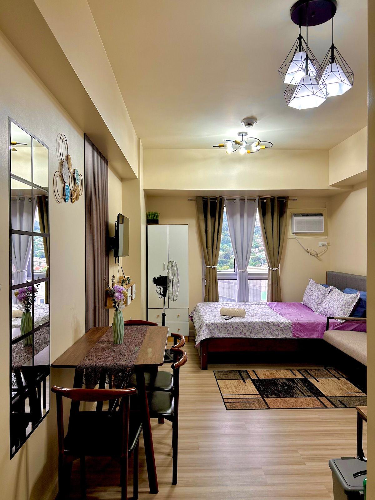 A cozy & thoughtfully furnished studio condo near Cebu’s major commercial & business hubs - IT Park & Ayala Center! So whether you’re visiting Cebu for business or leisure, you’re sure to be accessible & within reach to your destinations. Feel right at home and be greeted with the wonderful views of the sunrise, the hills and fairways. And with Fiber internet, always stay connected wether for work or Netflix. We’d love for you to experience Cebu and to feel right just at home.