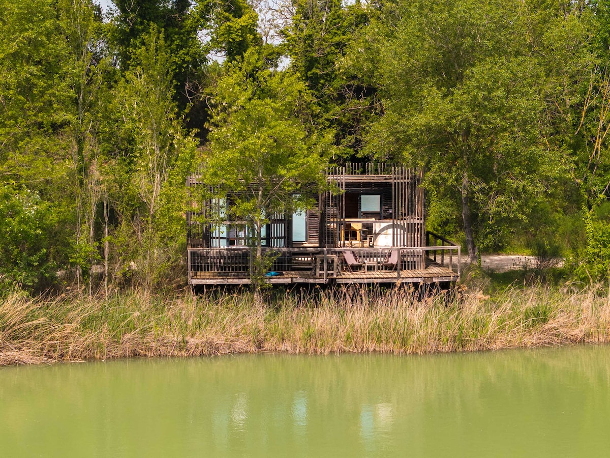 La petite cabane se situe dans un village gardois à seulement 15 minutes en voiture d'Uzès. C'est à l'arrière de la maison de ses propriétaires, une fois passé le petit portillon en bois et remontée l'allée en graviers, que vous la trouverez nichée. Fabriquée et joliment décorée par vos hôtes, elle vous offrira un lieu de vacances élégant et confortable. Vous pourrez également profiter de ses exterieurs avec sa terrasse et son jardinet offrant une agréable vue sur la piscine partagée.