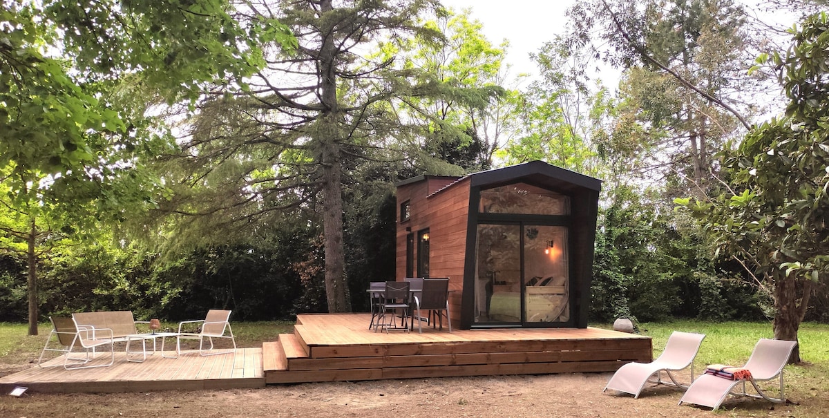 Découvrez le charme de cette maisonnette ambiance cocooning, à la décoration chaleureuse, sa grande baie vitrée intégralement ouverte donnant un sentiment d'espace très appréciable. Le confort interieur et l'espace exterieur sont également un "plus" pour profiter du moindre rayon de soleil...
