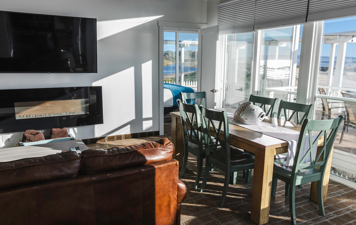 Our condo is one of the top 10 oceanfront resorts in California. This unit overlooks the ocean, pool, Jacuzzi, bbqs and fire pit. Access to the beach is just yards away. It has a beautiful restaurant overlooking the ocean just steps below the unit. The restaurant offers pool service , room service also a full bar with live music. The resort has a gym, spa, valet parking, bikes that you can use and it is very close to many restaurants, wineries and fun events.