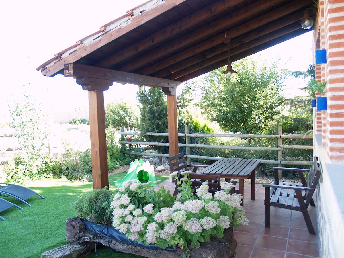 Casa independiente ideal para parejas y pequeñas familias. Aparcamiento y jardín privado, no compartido, porche y barbacoa No es una habitación, es un precioso cottage. Salón de concepto abierto. Zona de estar orientada a la chimenea de leña y smart TV, comedor con cocina integrada, baño completo, doble lavabo y precioso dormitorio con cama XXL. Próxima a la salida 375 de la A66. Descanso ideal entre el norte y sur Consulta si vienes con mascota. La piscina a 100 metros y es comunitaria