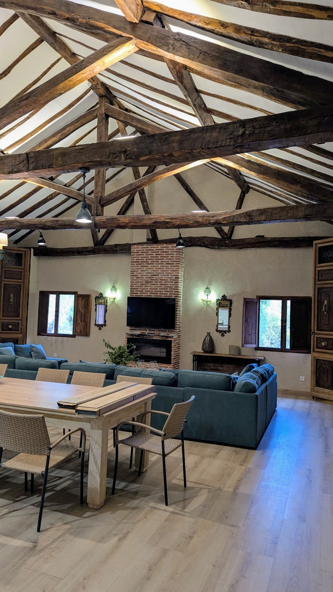 Un sueño hecho realidad! Una pequeña aldea medieval en un entorno mágico al pie de Gredos. Conformada por 3 casitas con tejado vegetal, jardín y una increíble bañera nórdica en cada casa. La Casa del Carpintero es una acogedora cabaña de cuento de hadas. Sus muebles tallados del s.18 fueron cuidadosamente restaurados. Alberga un dormitorio, una increíble cama de matrimonio, salón con chimenea interior, TV y un cómodo sofá-cama, cocina abierta totalmente equipada y un espacioso baño con ducha.