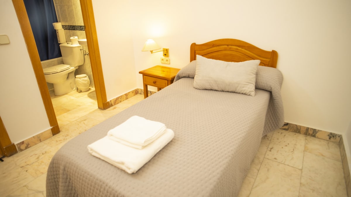 Habitación individual ideal para quienes viajan solos y buscan un espacio cómodo y práctico durante su estancia en Salamanca. Un ambiente tranquilo pensado para descansar y disfrutar de la ciudad con total comodidad.