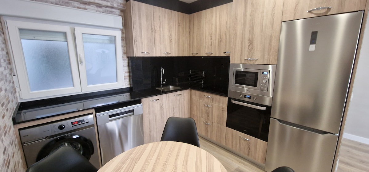 Enjoy Avilés in our modern and cosy city centre flat for 6 people. Just a 5-minute walk from the historic centre, this retreat has a terrace, underfloor heating and all the amenities you need for a perfect stay. Ideal for families and friends looking to explore Asturias in style and comfort. Your home in the heart of the city! 10 min from Salinas beach and 17 min from Xago beach. It is only 25 km from Gijón and 27 km from Oviedo.