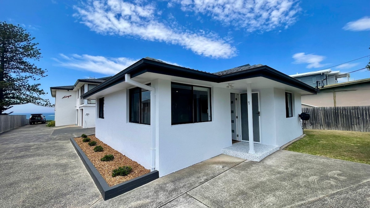Panoramic ocean views from this amazing 3 bed, 2 bath beachfront house. Beautiful kitchen, indoor & outdoor dining & open plan living spaces with fireplace and smart TV & WiFi. Perfect destination for a family holiday with plenty of options for swimming, surfing and stand up paddling. Enclosed yard with trampoline and BBQ on deck. Stand up paddle boards, body boards provided as well as beach toys for little ones too. Pets allowed.