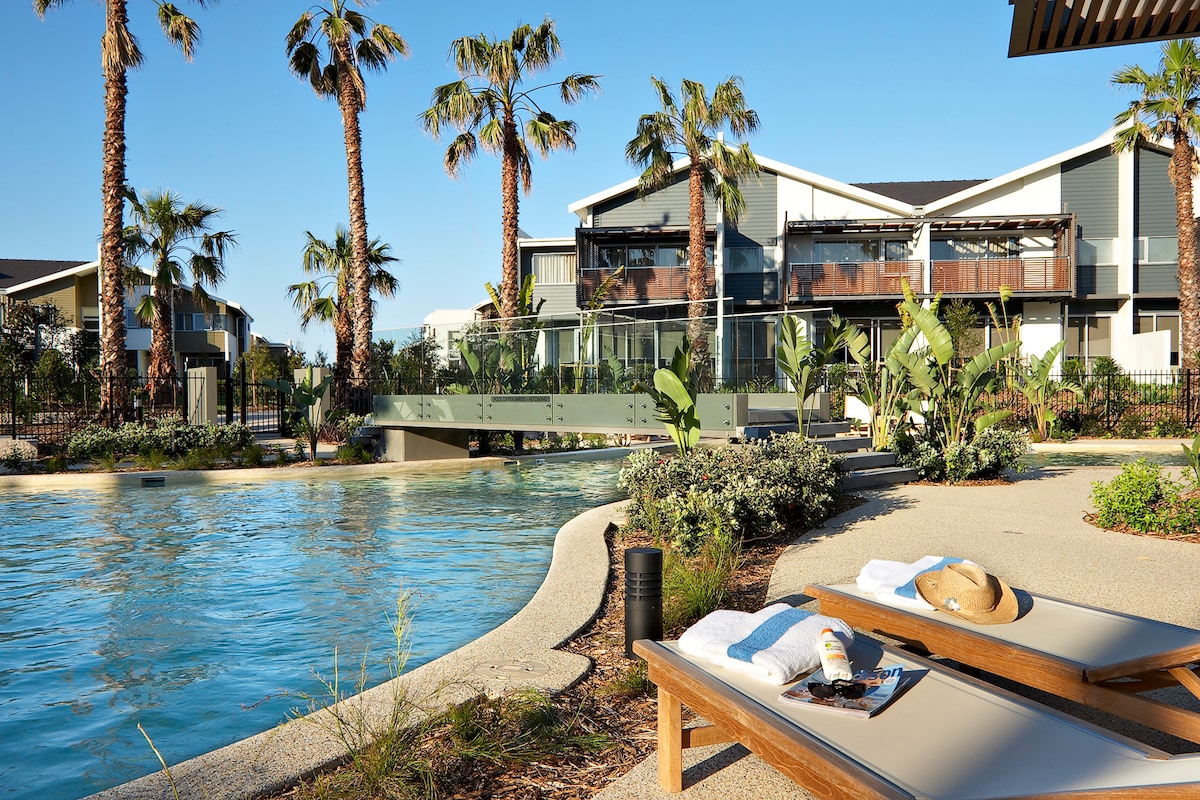 Lakefront with spectacular views Up to 6 guests with 3 bedrooms. King suite with ensuite and 2 Queen rooms, all with built in wardrobes. Stunning private rooftop terrace with spectacular views and 7 seater spa for your private use only. Access to the resort pool and games room. Easy access and only 90 minutes from Sydney Walk to the beach (great surfing), park with bike and walking trails, restaurants/cafes and shops. Close to 3 golf clubs (Magenta Shores, Shelly Beach & Tuggerah Lakes)