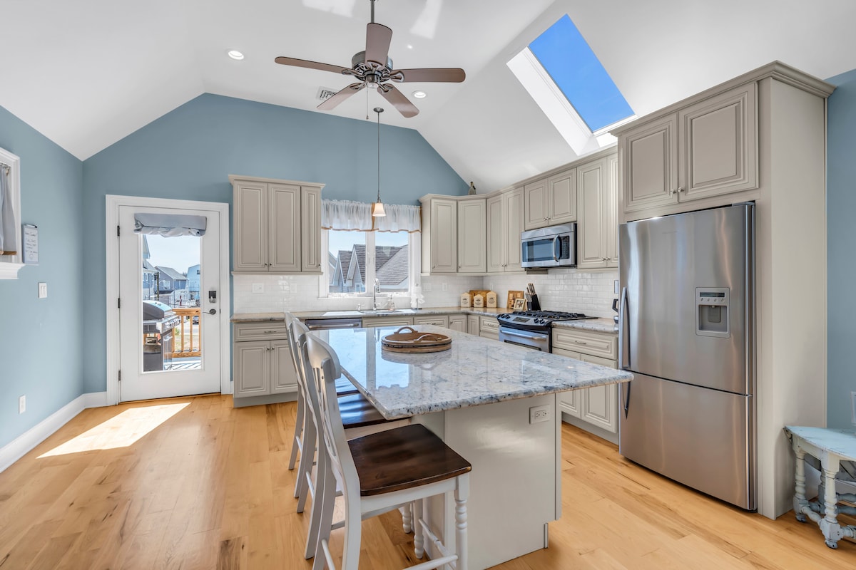 Come enjoy our newly renovated beach house! Sit on the adirondack chairs on the front porch and read a book or BBQ on the back deck. The 1st floor consists of the kitchen, living room, half bath, and laundry. Our large backyard has a grill, outdoor shower, fire pit and plenty of room for fun. The 2nd floor has 3 bedrooms w/balconies and a full bathroom (w/bathtub). We have a long driveway and an easy 10 min walk to the beach. We hope you will enjoy our beach house with a 5-star experience!
