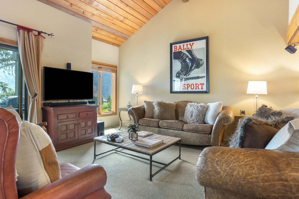 Please note. Early check in/Late check out not available. Kick back and relax in this calm, stylish space. Our warm and welcoming condo is nestled in a quiet but convenient area very close to lifts and town. Cozy up to the gas fireplace, Relax on the covered deck Adirondak chairs with coffee or a cocktail. Use the provided robes to take an easy stroll to the pool and hot tubs after a day of skiing or hiking. Mountain luxury is just a click away!