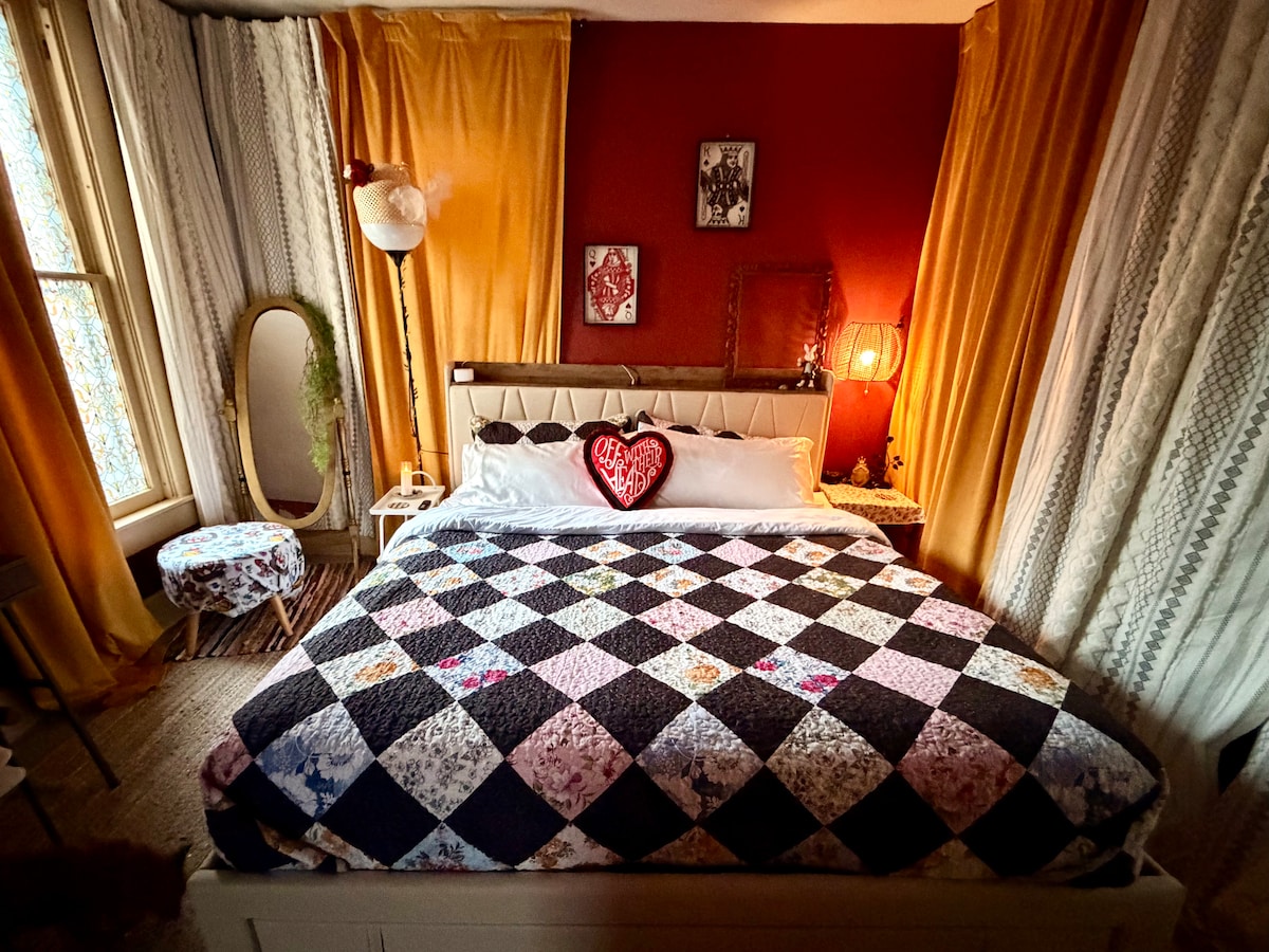 Cozy and colorful carriage house in Historic Herron Morton. Walking distance to restaurants, breakfast joints, coffee shops, downtown. Sip your coffee at the Juliette balcony, and take in the city views. Play cards till the wee hours, take an evening stroll through the neighborhood. Located on a peaceful side street in a historic Victorian neighborhood. Just north of Mass Ave and downtown. Close to I65/70, Lucas Oil Stadium, and Broadripple. Free street parking and well lit alley entrance.