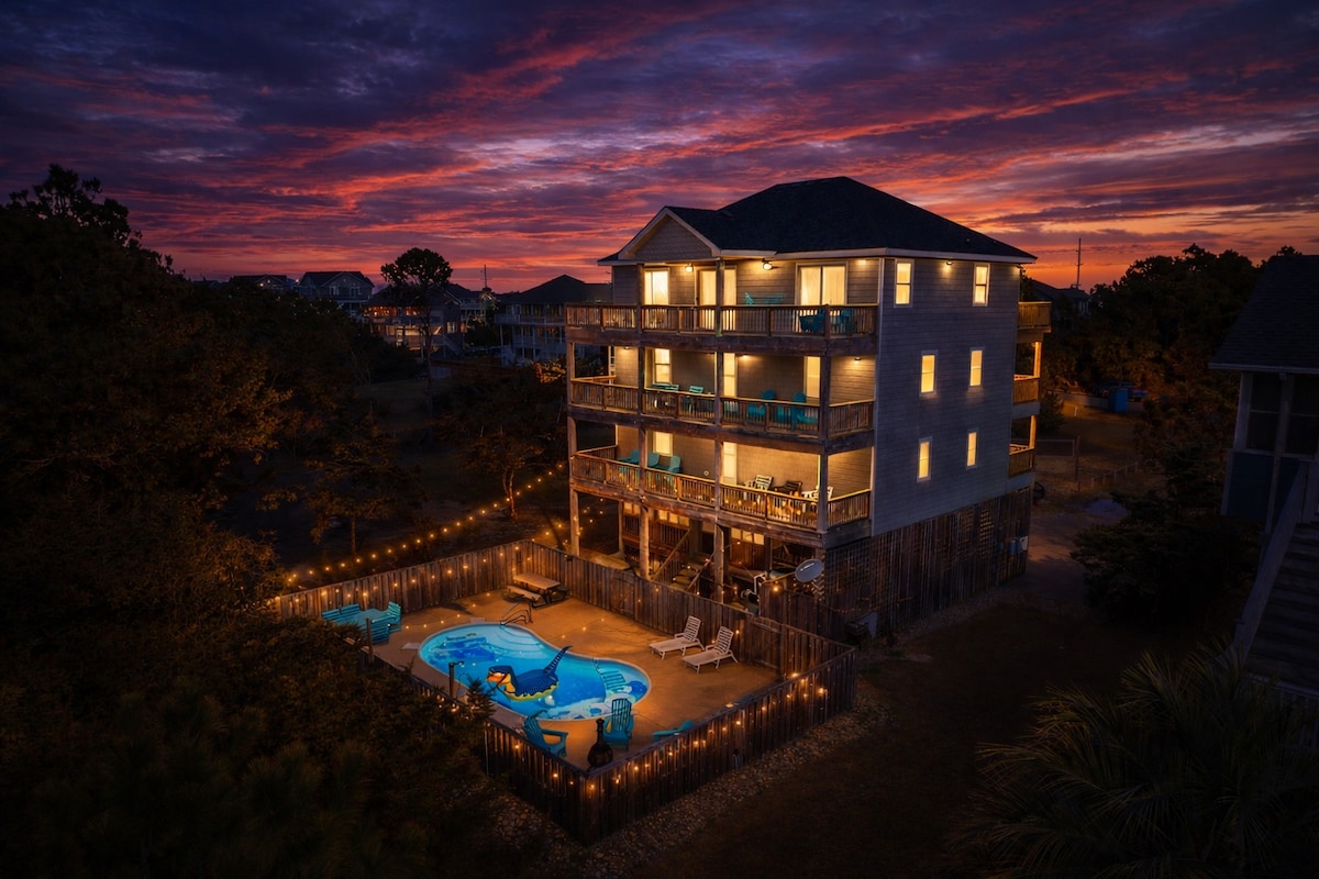 Once Upon a Tide - OBX Escape to your dream beach house, where sleek modern updates blend seamlessly with a focus on ultimate family relaxation. The home sits just 4 blocks from the ocean's call and conveniently overlooks a beautiful lake, perfect for fishing & enjoying the sunset views. With a fully stocked playroom & safety features throughout, you won’t question how to spend time with your kids on rainy days or off the beach
