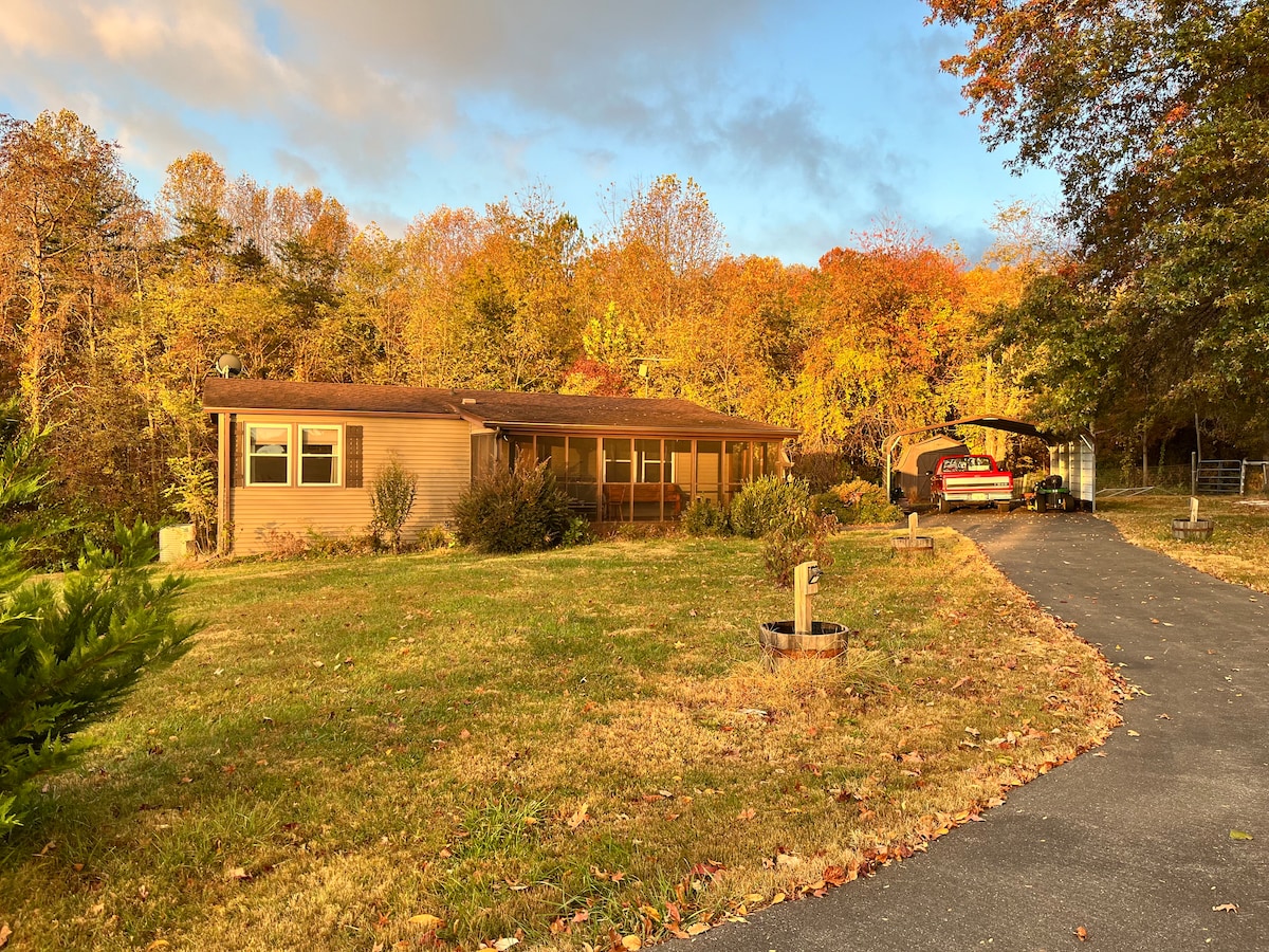 Escape to our guesthouse on a little farmette. This peaceful setting tucked away on several acres along a creek with nature trails is the perfect mountain getaway. We are conveniently situated near quaint wineries, breweries along with hiking and the Blue Ridge Parkway that is a short hop, jump and a skip away. Every effort has been made to keep this a green haven, chemical and synthetic scent free, so you can leave recharged and rested. Non-smoking