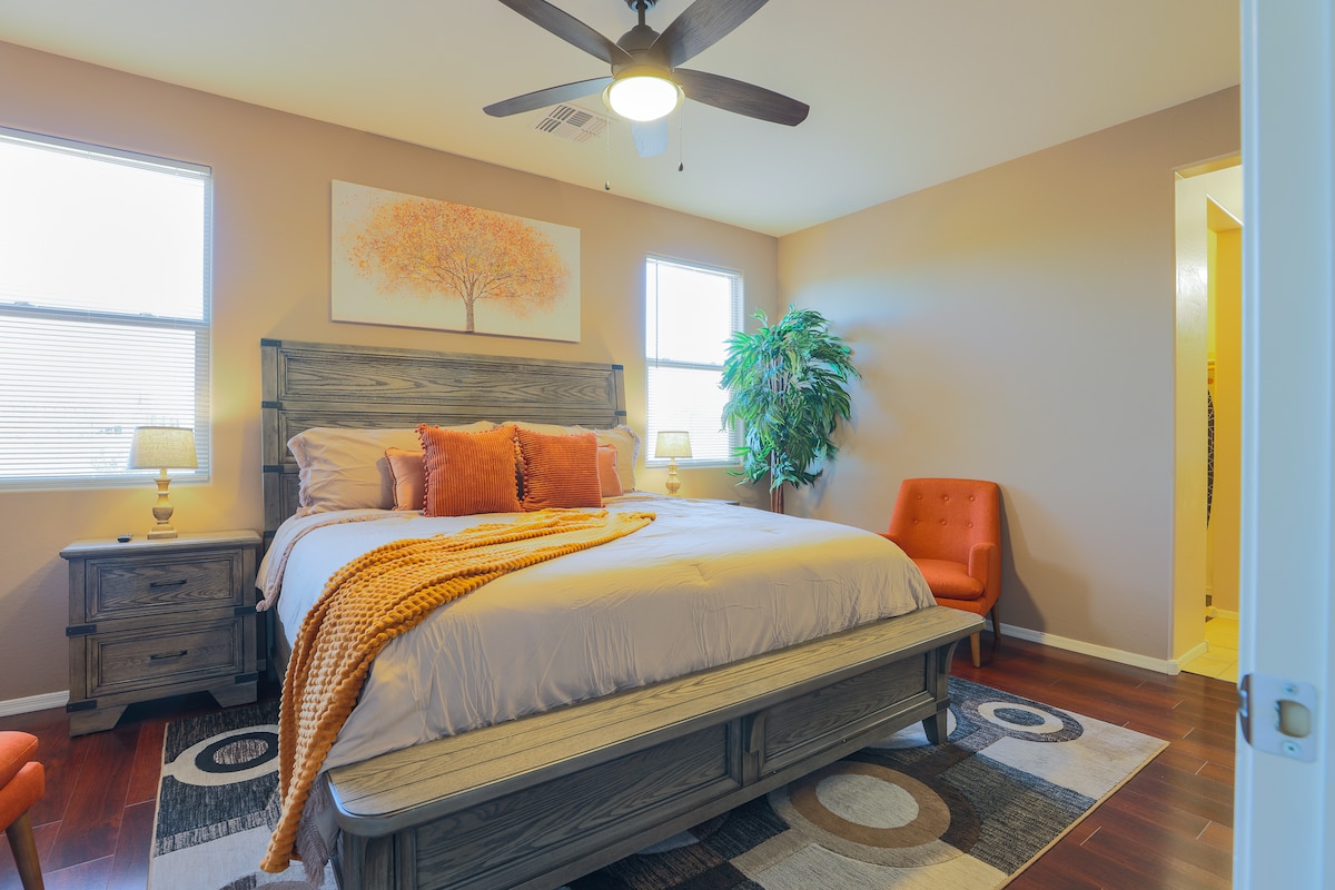 Welcome to Glendale Cove by the Stadium! Perfectly located just a 5 minute walk from State Farm Stadium and Westgate Entertainment District, our spacious 4 bedroom home is the ideal spot for families, friends, or sports enthusiasts visiting Glendale. Whether you're in town for a concert, a game, or just to explore the area, you'll love our convenient location and family-friendly amenities.