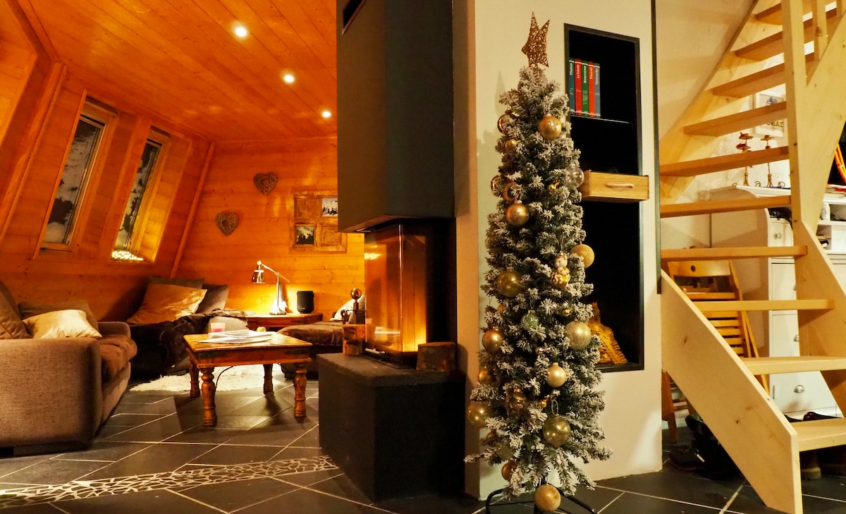 Add logs to a fireplace with a massive stone hearth and recline on a rustic wooden sofa. Gaze through picture windows at the alpine forest surrounding an authentic chalet. Return from the slopes and unwind in a luxury sauna in a cabin-chic bathroom. Une chambre de 25m2 avec lit double, rangements, armoire authentique. Un salon chaleureux et spacieux avec double baies vitrées donnant sur le Mt Blanc et cheminée. Et un sofa banquette convertible en 2 lits individuels. Cuisine pratique et toute équipée. Une salle de bain en granit avec douche et sauna 3 personnes. Une terrasse devant forêt et ruisseau ( avec fréquente visite des biches - voir photos ), avec fontaine et vue imprenable sur le massif du Mt Blanc. The chalet is an individual construction fully available and reserved for the guests. So are the terrace and the surroundings ( a small river, a private bridge and access to the forest ). A disposition pour toute question. Dans le hameau de Coupeau : Chalet authentique dans la forêt au-dessus des Houches avec vue exceptionnelle sur le massif du Mont Blanc. En Bord de petit torrent avec des biches A 5 min en voiture des Houches, à 10 min de Chamonix, à 1h de Genève. Easy access by road to the chalet. 2 kms from Les Houches and 10 kms from Chamonix. Parking just behind the chalet A fully renovated old chalet. With all modern comfort ( inc Sauna for 3 ) and top decoration. A unique view on the MontBlanc chain. The chalet is in the hamlet of Coupeau, in the forest above Les Houches, with exceptional views of Mont Blanc. It's a 5-minute drive to Les Houches, 10 minutes to Chamonix, and an hour to Geneva.