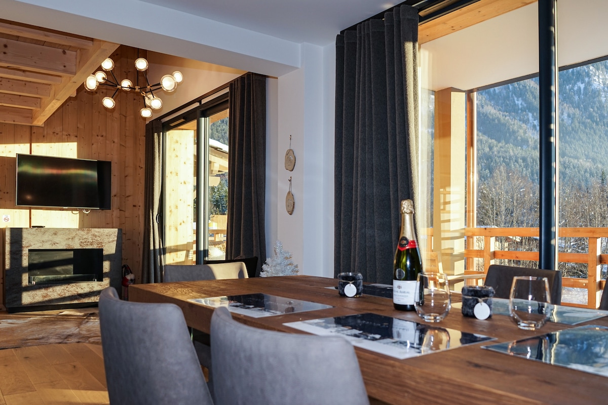 This luxurious chalet of 280m2 and 1740m2 of land is located in the popular village of Les Praz, only 2km from the center of Chamonix. The quietness of its environment, with it's southern exposure as well as the view of the Mont Blanc and on the Drus. The recent renovation guarantees a comfortable stay that meets the expectations of the most demanding travelers, notably via its cinema and sports room, as well as the outdoor sauna.