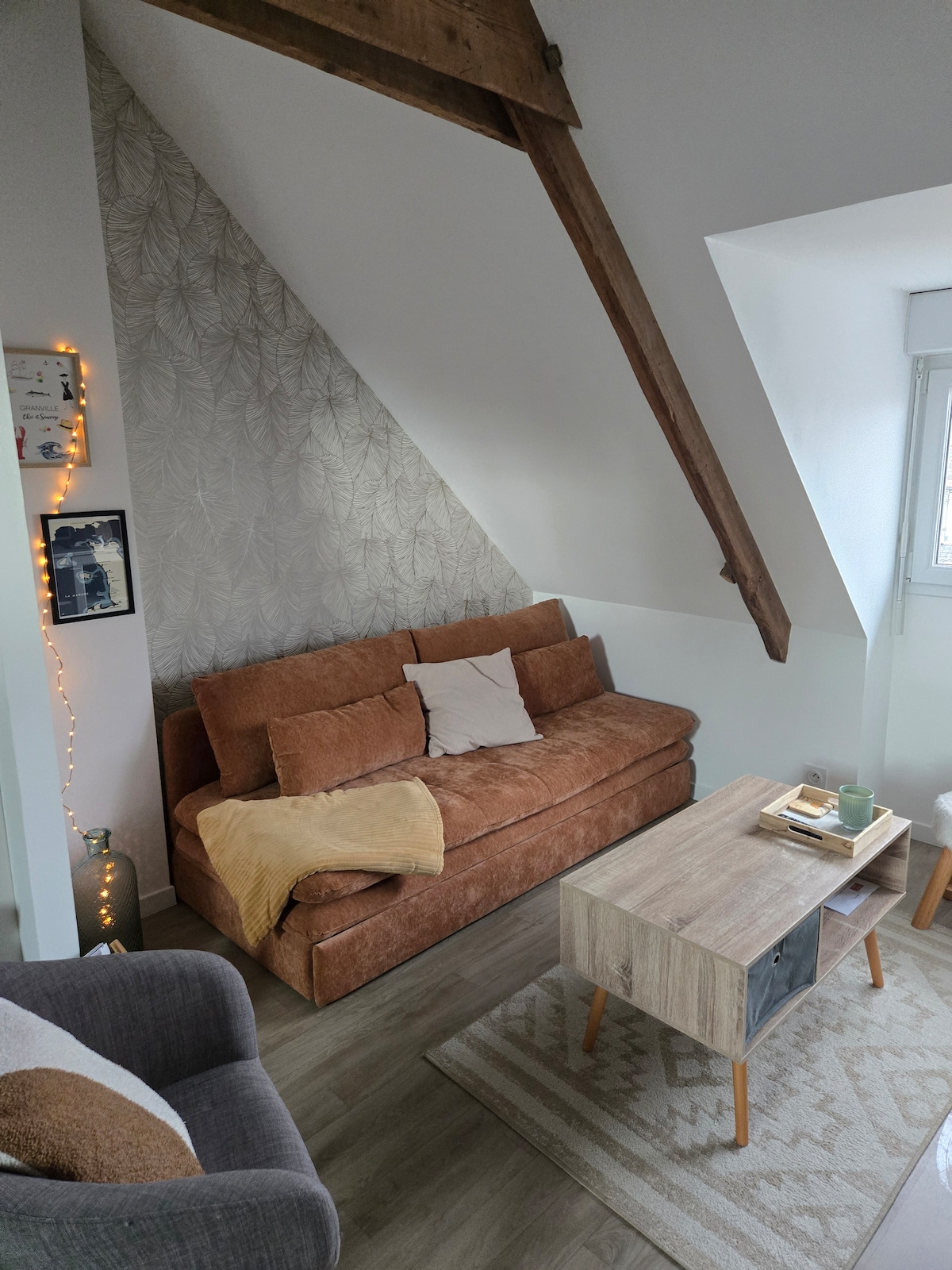 Duplex de charme au 1er étage d'une ancienne maison de ville, se trouvant à 10 minutes à pied du centre ville et à 5 mins à pied de la gare SNCF de Granville (Paris en direct en 3 heures depuis la gare Montparnasse). Vous pourrez oublier la voiture pendant votre séjour tout est accessible à pied. Idéal pour une virée granvillais en couple ou en famille. Grande luminosité traversante. Vous aurez accès à un jardin fleuri partagé avec le studio du rez-de-chaussée.