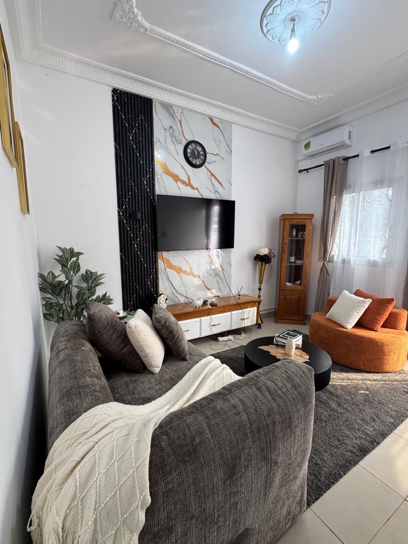 Détendez-vous dans ce logement calme et élégant.chic moderne et confortable , sécurisé, goudronné jusqu’au site , 15 minutes de l’aéroport, entouré des comorbidités , services d’entretien, wifi , parking, cuisine équipée, baignoire, eau chaude, télévision 55 pouces, climatisation salon et chambre, grande chambre avec un grand lit 3 places (1.6 mètres) placard , TV , 3 terrasse ( salon, cuisine et chambre principale) d’une superficie de 150m2