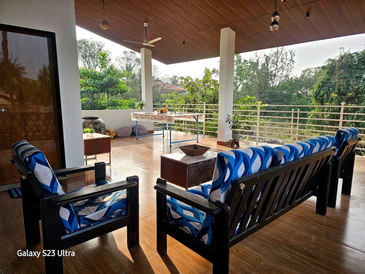 aranyaa at oasis is a perfect quick getaway from Bombay. Twenty minutes from Mandwa Jetty by car and twenty minutes to Kihim, which is the closest beach. At the foothills of kankeshwar in Mapgaon,at the edge of the reserved forest. Whether it's a weekend you want to spend relaxing with family and friends or for a work from home week,the calm clean air and serenity of the green preserved forest and hills that the property overlooks, provides with the required respite from the city bustle.