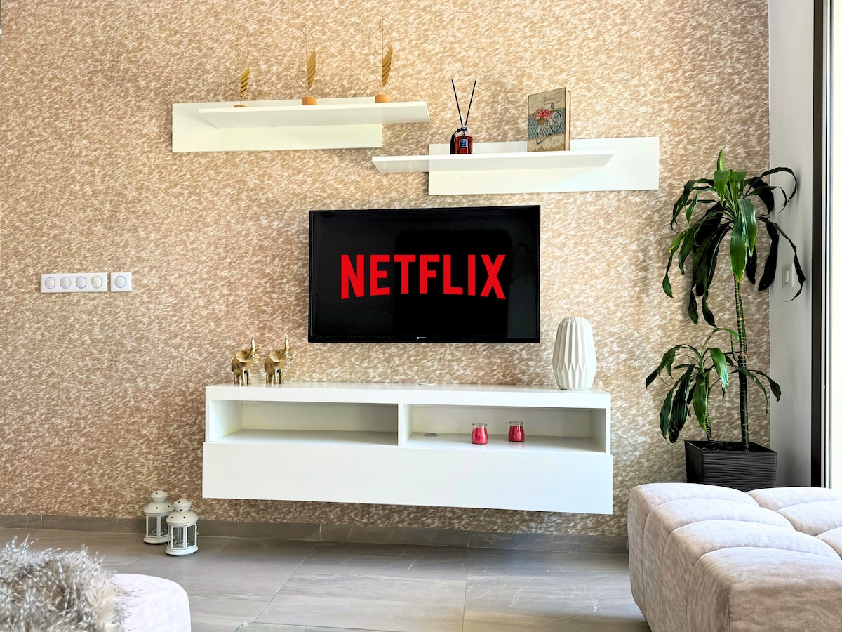 Escape to our modern 2-bedrooms, 3-bathrooms apartment on the Moroccan coast in Tamraght. Perfect for 5 guests, this stylish retreat features a fully equipped kitchen, private balcony, and access to a large shared pool. Located minutes from the beach and vibrant surf scene, it's the ideal base for exploring Taghazout and Agadir. Enjoy comfort and convenience with a reserved parking spot and self check-in.