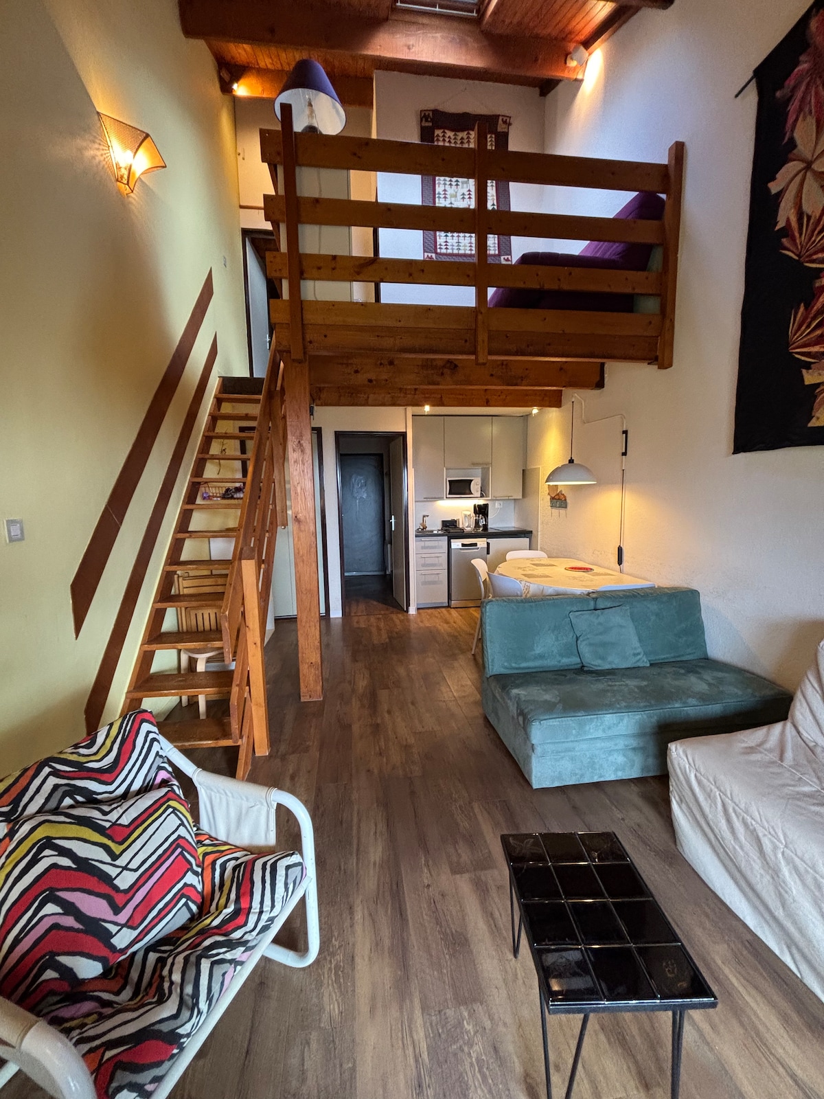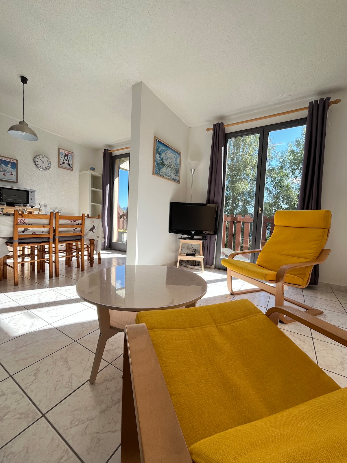 T2 cabine de 30m2 comprenant une chambre,une salle d'eau,un couloir avec 2 lits superposés et un sejour avec BZ ,cuisine equipée et TV connectée. L'appt est situé a environ 200m des pistes.L'arret de la navette, un spar, et une boucherie sont au pied de la résidence. Il dispose egalement d'un casier a ski. Des places de parking sont disponibles devant la résidence. Les draps et les serviettes ne sont pas fournis seulement les couvertures et torchons.