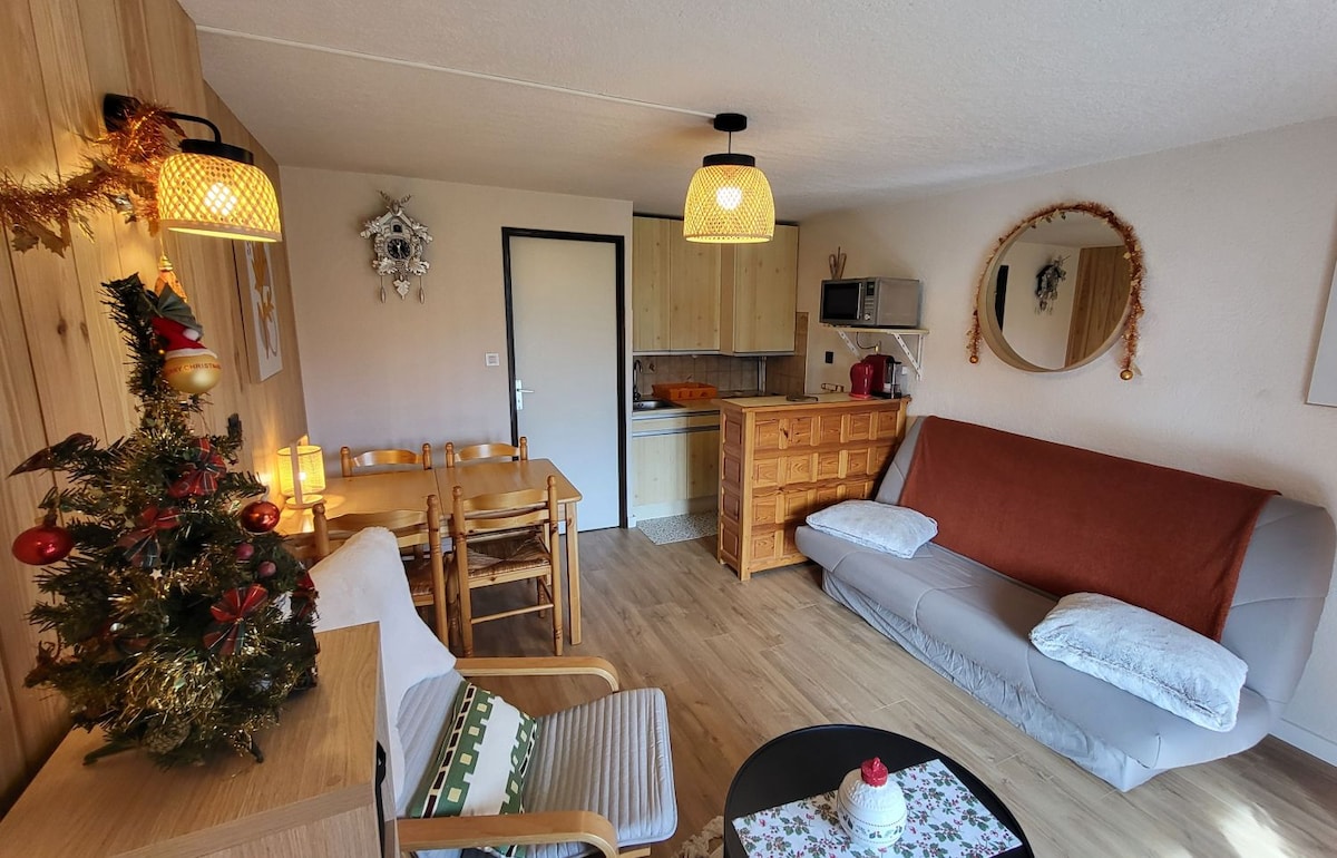 Relax in this brand-new, modern, and welcoming one-bedroom chalet. Full of calm and serenity, you'll experience harmony with nature. A shuttle located just steps from the accommodation will take you to the town center in 2 min. The town center and cable car are only a 15-min walk away. Ideally situated at the starting point of several hiking trails, you can marvel at the region's landscapes, including the Dent d'Orlu. Wi-Fi, a fully equipped kitchen, mountain views, parking... comfort guaranteed