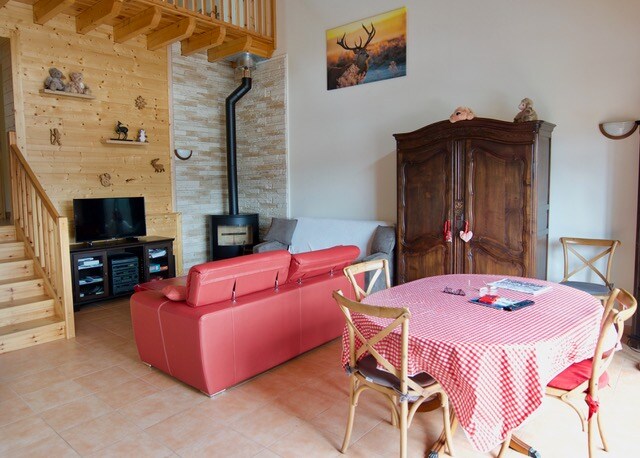 Nous vous proposons une maison familiale dans un pays montagneux. Le logement est au 1er étage et nous sommes au rez de chaussée et partageons notre grand jardin. Arrivée souhaitée le samedi pour 1 semaine. Autre besoin : nous contacter 1ers commerces à 50 mètres, supermarché à 200 mètres, bars, restaurants, ciné, médiathèque etc à 10 mn à pied pour passer de très belles vacances en famille et au calme. A louer 2 vélos électriques et 2 trottinettes. Station de ski familiale à 1/2 h de voiture.