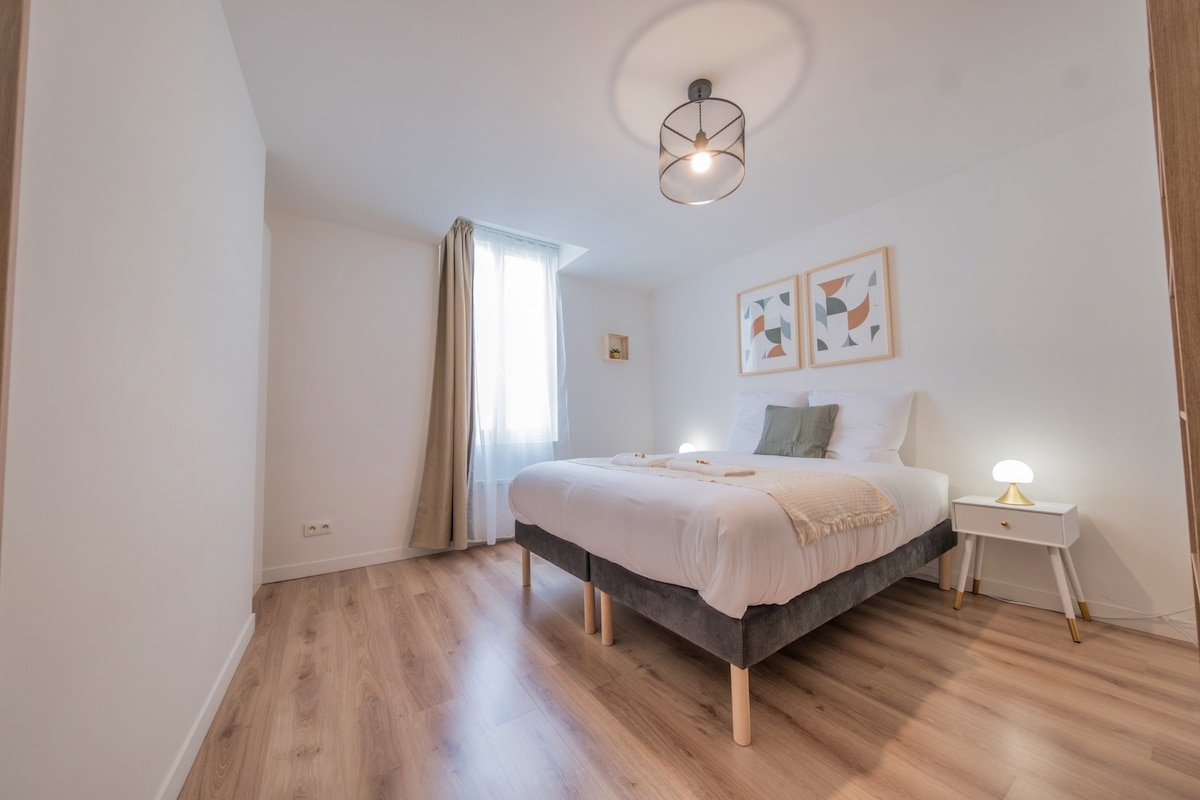 Bienvenue à Épernay ! Découvrez notre logement neuf en plein centre-ville, idéal pour deux adultes et deux enfants ou deux couples. Profitez d'un lit en 160 cm et d'un canapé-lit B-Z, d'une cuisine ouverte moderne et d'une cour intérieure sécurisée. Parking dans la rue ou parking souterrain à proximité. Smart TV HD, Wifi, café/thé offerts, et équipements de qualité inclus. Parfait pour explorer la capitale du champagne. Réservez dès maintenant pour une expérience inoubliable !