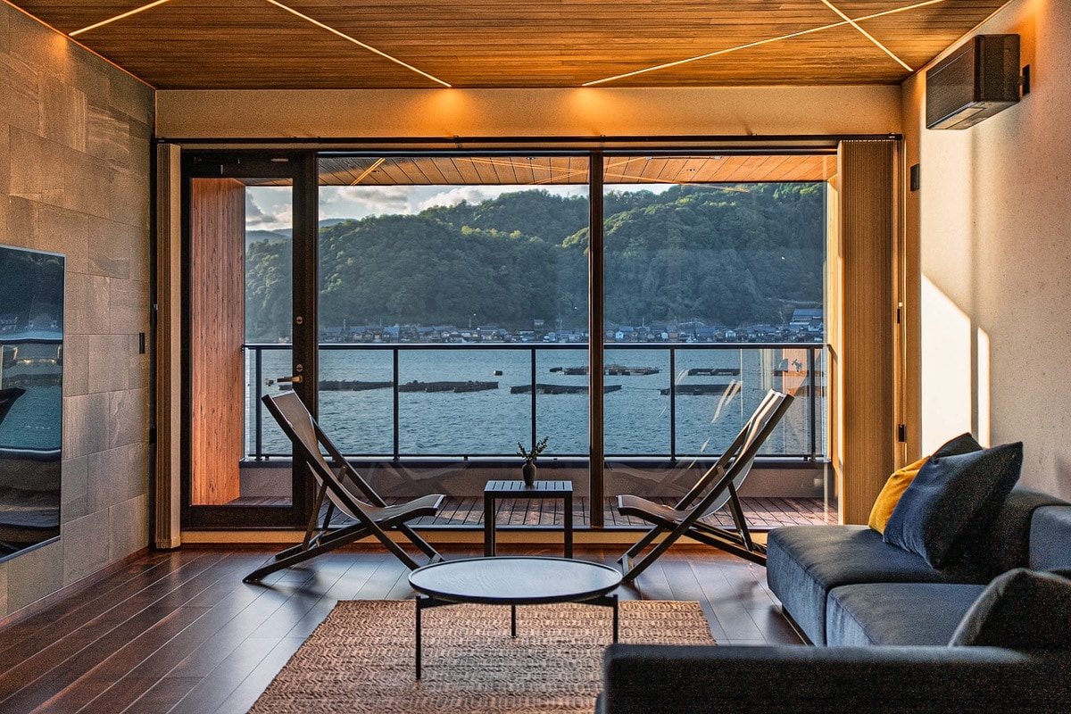 海と共に生きる町・伊根 その伝統的な舟屋を贅沢にリノベーションした「舟屋 栄 -Funaya Sakasu-」は、波の音を聞きながら過ごす大人のための隠れ家です。 歴史ある舟屋の趣と現代的な快適さが調和した空間で、2階ベランダからは伊根湾の舟屋群や穏やかな海を一望でき、心満たされるひとときをお楽しみいただけます。 歴史ある舟屋の趣と現代的な快適さが調和した空間で、静寂と海景色に包まれる上質な滞在が叶います。 日中は穏やかな海と空の色彩に包まれ、夜は星空を眺めながら過ごすことで、日常の喧騒を忘れられる贅沢なひとときに。 伊根の海と寄り添う時間を、大切な人と心ゆくまでお楽しみください。 伊根湾を巡る海上タクシーに、テラスから直接乗り入れることが可能です。 舟屋の町並みを海側から眺める、ここでしか味わえない特別な体験をお楽しみいただけます。 また、2人用のプライベートサウナも完備しており、穏やかな海を眺めながら心身をリフレッシュできます。 ※サウナの設置/テラスから直接海に出る事が出来るなど魅力はございますが、お子様から目を離されると大変危険です。 大人の方のみでの宿泊が推奨です。