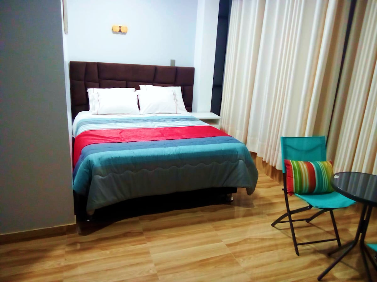 Habitación comoda, con baño privado, Agua caliente, con WI-FI, y TV Cable. ¡La ubicación es perfecta! ¡Te invito a conocernos! Disfruta del fácil acceso a los atractivos populares.