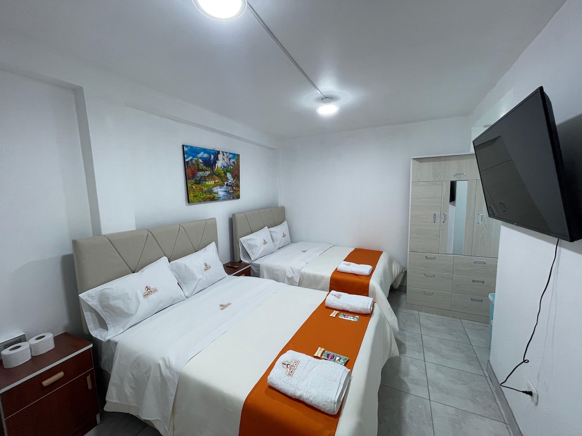 Realizamos algunos cambios para ofrecer una mejor experiencia, todos los cuartos totalmente privados (con puertas), el departamento es totalmente independiente, cuenta con dos habitaciones con una cama de dos plazas cada una, ideal para grupos de hasta 4 personas. Su familia o grupo de amigos estará cerca de todo cuando se hospeden en este alojamiento céntrico. El depa se encuentra a 5 -7 minutos de la plaza de armas caminando, esta totalmente equipado para tener un experiencia inolvidable.