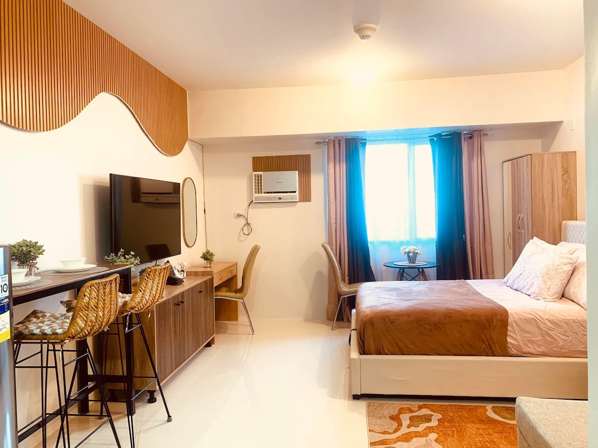 Relax in our beautiful & more spacious than usual corner studio that comes with a balcony. Our place is perfect for tourists & business travelers who wants to be in a safe, central & convenient location- Ayala Mall is just a 6 min. walk or 2 min. car ride with lots of cafes, restaurants, groceries, shops, etc. There are banks, bakeries & convenience stores nearby too. If you want to have a staycation, you can lounge at our scenic rooftop infinity pool with the best 360 view of Cebu.
