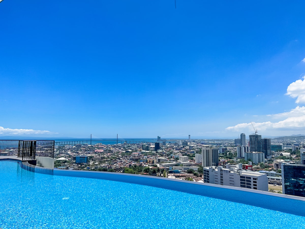 Within the heart of Cebu City- 5 minutes drive to Ayala Mall. Has a small commercial establishment right across the bldg with restaurants, spa and 7/11 convenience store. Furniture & appliances are of good quality and are well taken cared of. Balcony has a beautiful view of the sea & pool. We have stayed here for more than a year so we have experienced how nice the unit is, ourselves. We take extra precaution too by cleaning our unit with the use of a hydrogen peroxide solution.