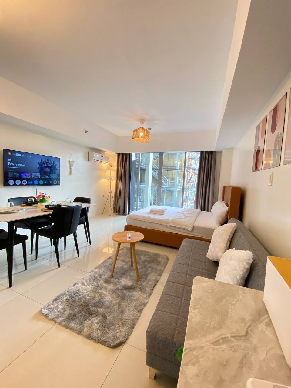 Cozy corner studio unit just 5 min away from NAIA Terminal 3 and Runway Manila. Enjoy a bright space with an airport view, comfy bed, smart TV with free Netflix, and fast WiFi. Guests also have free access to the pool, gym, and playground, making it perfect for layovers, quick getaways, or city stays.