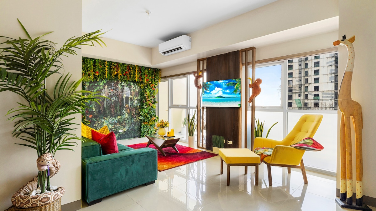 Modern&spacious 1BR w/ balcony and pool just a few kilometres from the airport and within walking distance from numerous attractions in the Manila Bay area. Well-equipped kitchen, sunlit living room, comfortable bed, Wi-Fi, Netflix, aircon & TV in both living and bedroom. Perfect place to stay for couples, small families or business travellers. Sauna and kids play area - free to use Pool - free up to three guests; P200 for each additional guests.