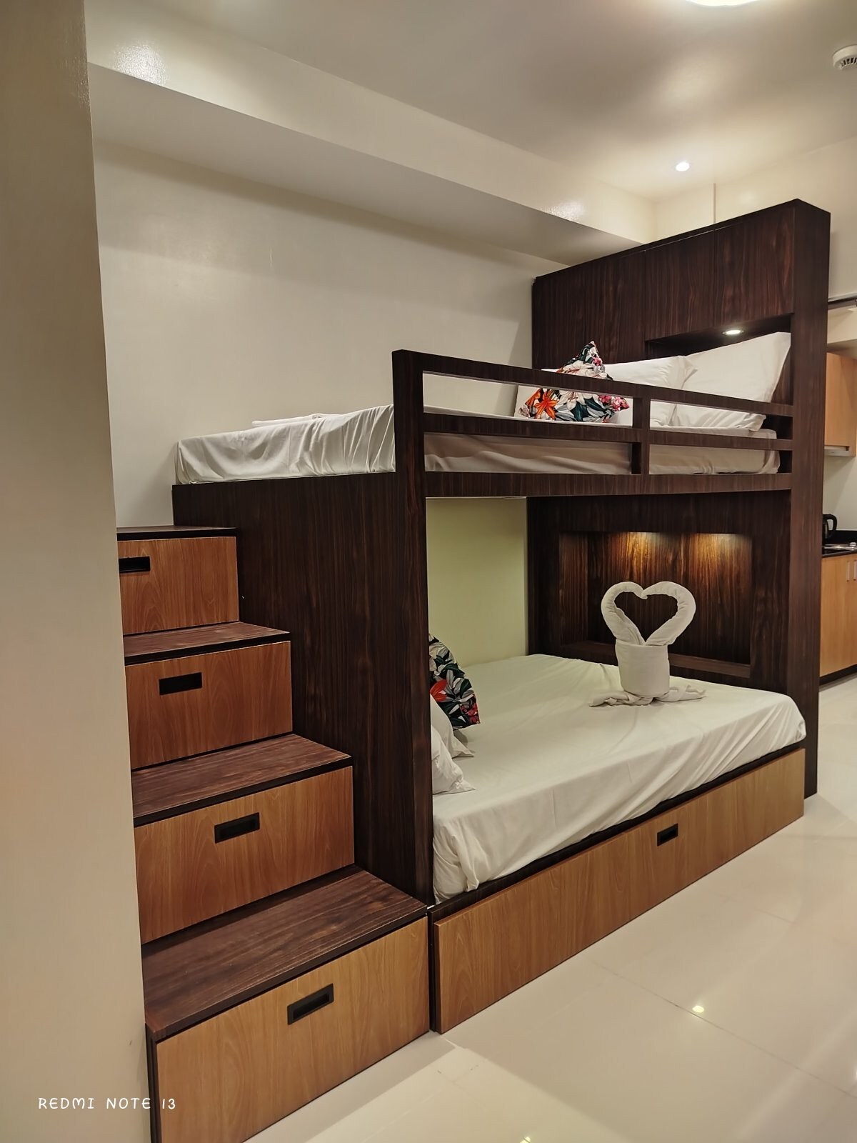 Elmo’s Tagaytay Staycation is Your Home Away from Home. Stay in an upscale place that’s near everything you want to visit. A Beautiful condo unit with a Spacious 40-sqm unit with two Semi-double beds and a private balcony overlooking the heated pool and your own kitchen for light cooking. Complete with all cooking utensils and Corelle Dinnerware sets of four. Shower room is equipped with Hot and Cold Water for your comfort, so as the wash basin.