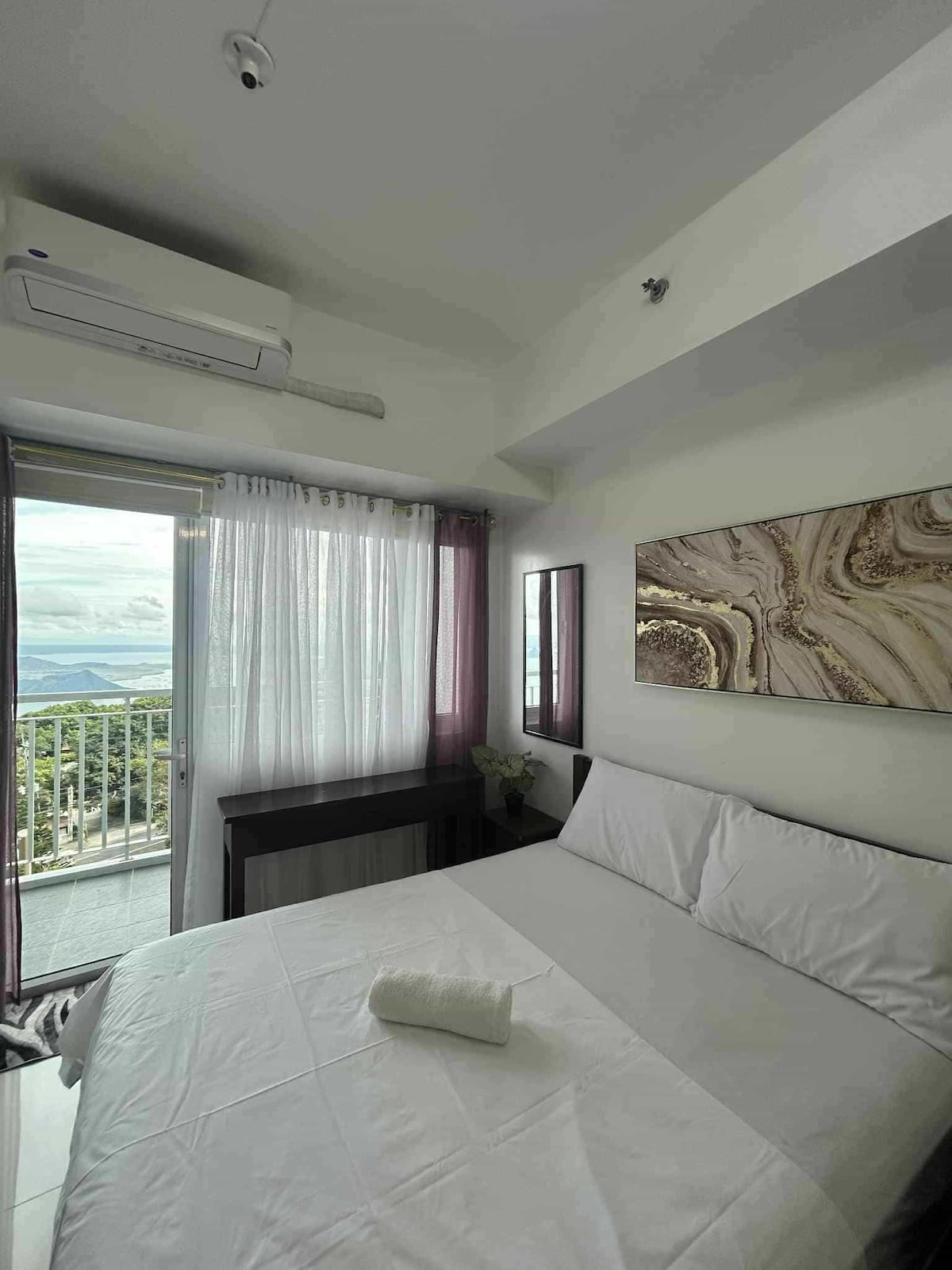 Cityland Tagaytay Prime Residences 2br suites, 2tb with 3 balconies 60sqm. Each room has air-condition, blackout curtains, built in wardrobe/ cabinets and balcony and the bathrooms has cold and hot shower and the toilets has bidets. Both rooms are spacious.
