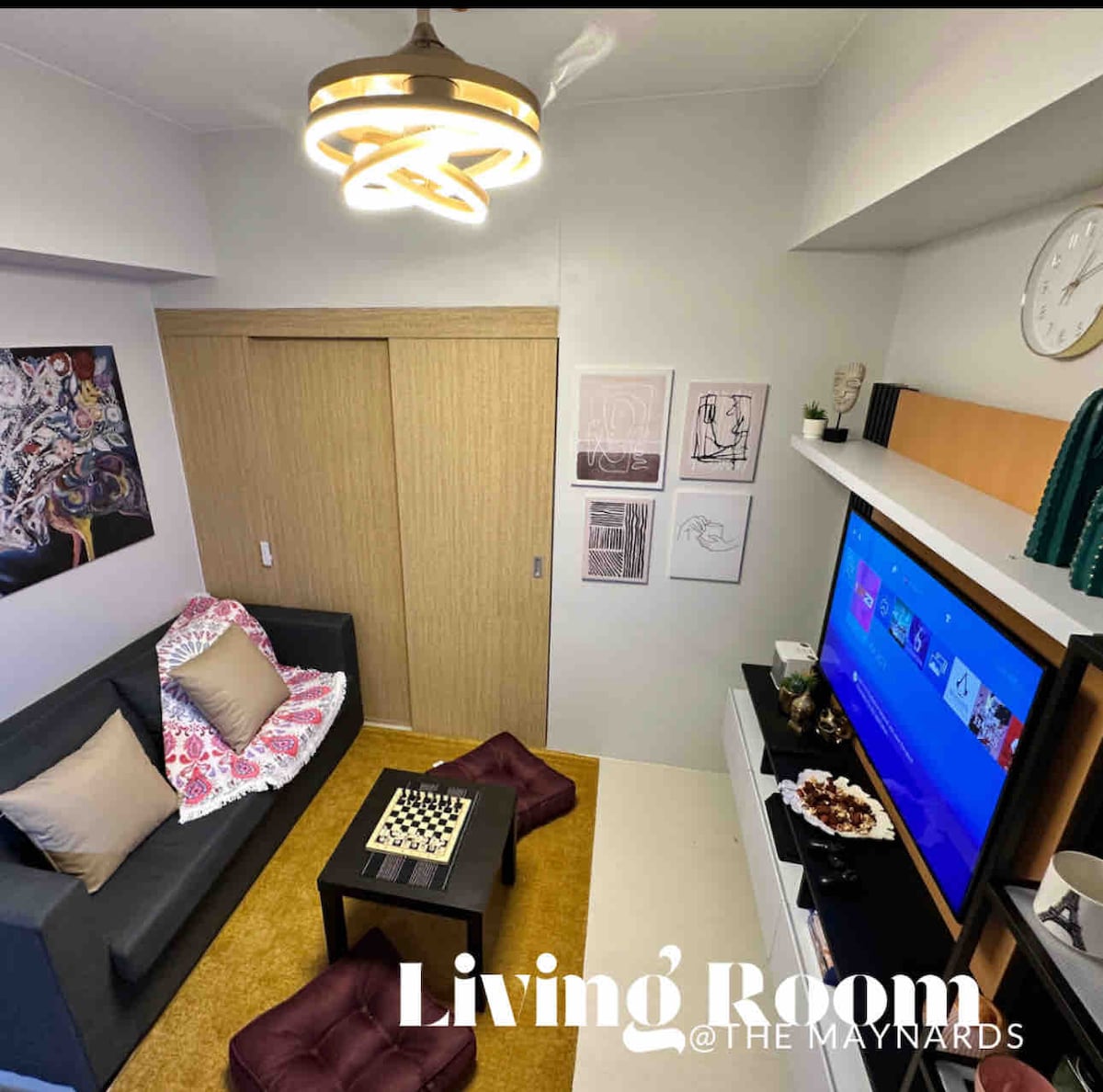Welcome to our stunning condominium unit with a home theater theme designed 🎥🎬 🍿 FREE POPCORN! 🍿 🏖️ Room Features: ✅ Cinematic experience using projector with built in apps like Netflix, Youtube, etc. ✅ Air conditioned Room ✅ Stand Fan ✅ Double Size Bed ✅ Sofa-bed ✅ Board and Card games ✅ Microphone for videoke ✅ Refrigerator ✅ Microwave ✅ Hot & Cold Shower ✅ Towels ✅ Amenity Guest Kit ✅ Electric Kettle ✅ Kitchen Utensils ✅ Iron for clothes ✅ Free Wifi Enjoy your stay! 💓