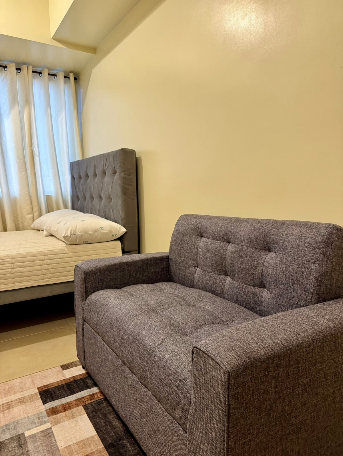 Welcome to this cozy studio unit in Quezon City, your perfect retreat! The space features a comfortable double-size bed, a 55-inch smart TV with Netflix, Disney+, and HBO Go, paired with a recliner sofa, a compact yet fully equipped kitchenette, and a stylish living area perfect for unwinding after a day of exploring. With cafes, restaurants, and attractions just steps away, whether you're here for business or leisure, this studio promises a delightful stay in the heart of the city.