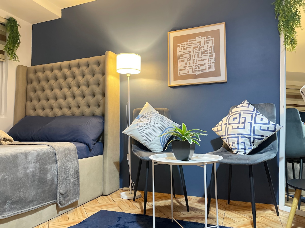 A hotel-type condo features a chic yet cozy industrial design, located at 138 N.Domingo St. Centro Tower, Cubao, Quezon City. Conveniently, just steps away from restaurants, shops, and malls the unit offers easy access to everything you need. It is also highly accessible via public transportation, making it an ideal home base for exploring the city. Whether visiting for business or leisure, this stylish industrial-inspired condo provides the perfect space to relax and unwind after a long day.