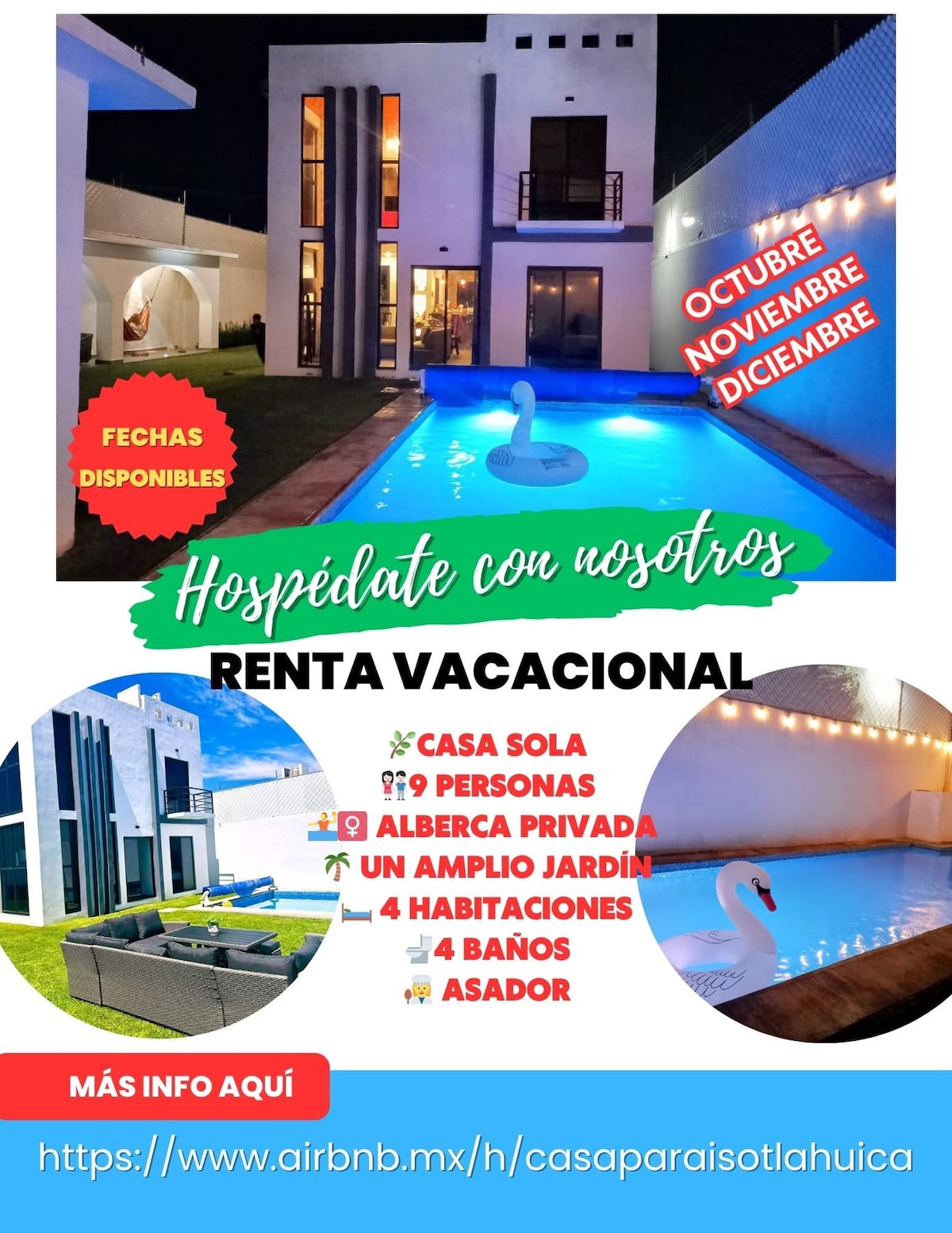 平均评分 4.4 分(满分 5 分),共 5 条评价库埃特拉莫雷洛斯(Cuautla Morelos)的带泳池的房子