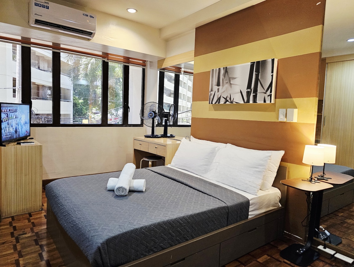 Welcome to our stylish and cozy studio apartment in the heart of Makati! Enjoy a comfortable Full-sized bed with a living area. Our strategic location places you steps away from Greenbelt, Manila's premier shopping and dining destination. The surrounding Legazpi Village neighborhood offers a foodie's paradise with a plethora of restaurants and bars. Our team is available 24/7 to ensure your stay is seamless and enjoyable. Come discover why Makati is the place to be in Manila...