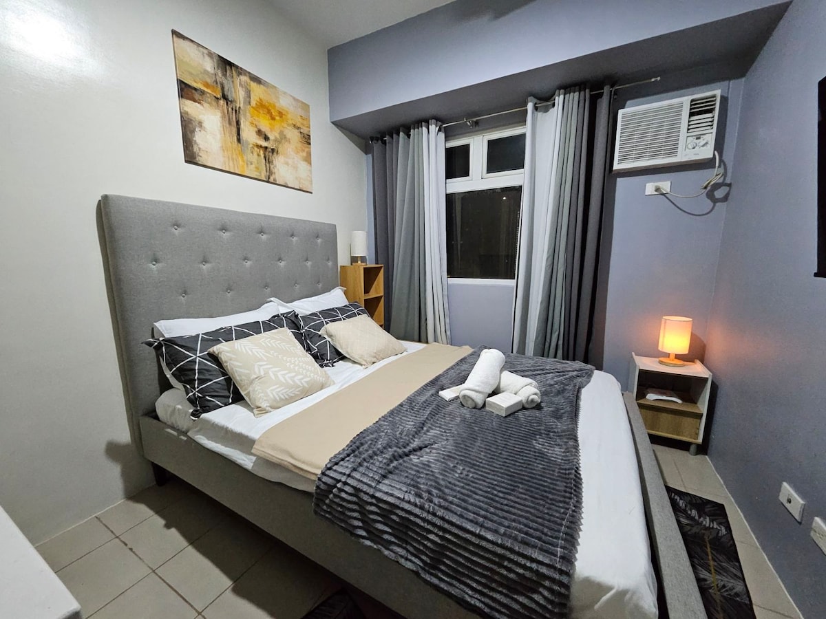 Affordable. Central Location. Clean, secure & cozy. 1 bedroom w/ ensuite hot shower, 32" flatscreen TV w/ cable, airconditioning, personal refrigerator, electric kettle, electronic safe. Free Wifi. 24 hour reception. Near Avenue & Century City Malls.