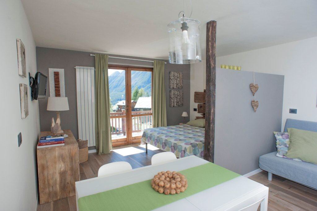 Romantico e accogliente monolocale ideale per una coppia: situato a solo 5 minuti di auto dalle piste da sci e dal centro. L'appartamento è composto di zona cucina,Letto matrimoniale ,bagno privato.C'é tutto quello che serve.Avete la possibilità e la libertà di portare le vostre lenzuola,federe e asciugamani,oppure di affittarli sul luogo:quindi se lo desideri,con esplicita richiesta, troverai tutto pronto in casa.Il pagamento delle lenzuola e asciugamani viene effettuato sul luogo.
